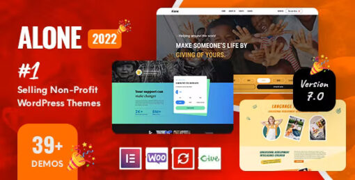 Alone Theme – Powerful and flexible wordpress theme that comes with 30+ unique and stunning demos, suitable for all your idea and different types of Non-profit Organizations, Ngo, Church, Events, Political, Candidate, Campaign project.