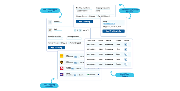 • Create Custom Shipping Providers – Create your own custom providers, you can set a custom shipping provider name, custom tracking link and image.