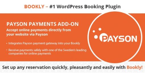 Enable online payments through Payson payment gateway on your WordPress website with Bookly #1 WordPress Booking & Scheduling plugin.