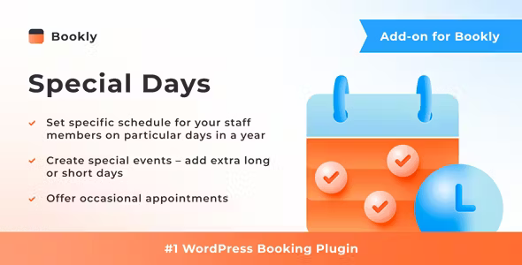Important: Bookly Pro Special Days Addon is an add-on that requires the Bookly PRO installed and activated. View Bookly PRO page at our page. Change working hours of staff members for special days in a year.
