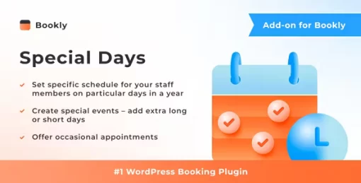 Important: Bookly Pro Special Days Addon is an add-on that requires the Bookly PRO installed and activated. View Bookly PRO page at our page. Change working hours of staff members for special days in a year.