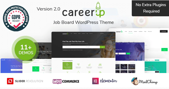 CareerUp Job Board Themee is a complete Job Board WordPress theme that allows you to create a useful and easy to use job listings website . Using CareerUp Job Board Theme, you can create a complete & fully Responsive job portal, career platform to run human resource management, recruitment or job posting website. CareerUp is not just a job board theme, it’s the best WordPress job portal template choice for anyone who wants a simple job script that makes money.