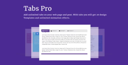 With WPShopmart Tabs Pro Plugin add unlimited tabs on your web page and post. With tabs, you will get 20 design templates and unlimited animation effects.